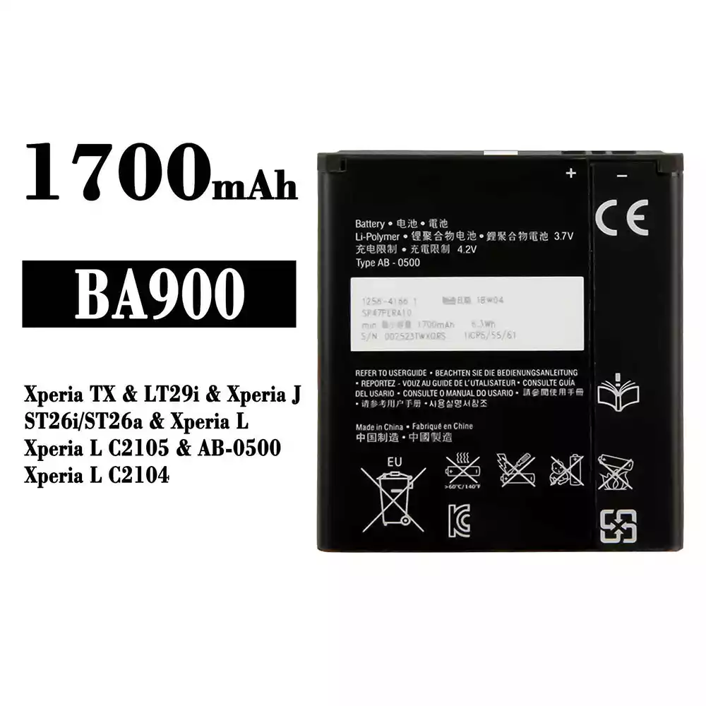 Battery BA900 for Sony Xperia TX / LT29i / Xperia J / ST26i / ST26a / Xperia L / Xperia L C2105 / AB-0500 / Xperia L C2104