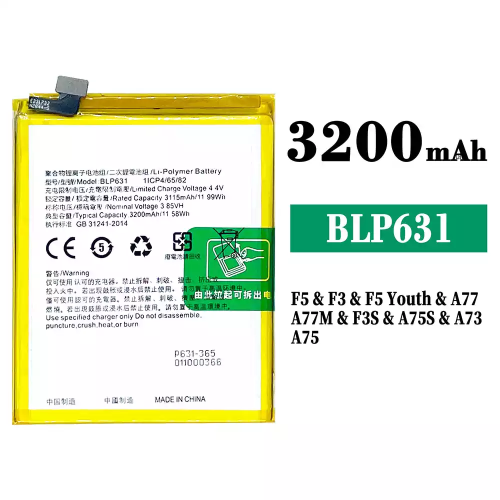 Battery BLP631 for OPPO F5 / F5 Plus / CPH1723 / CPH1727 / CHP1723 / CHP1727 / F5 Youth / A73 /CPH1725 / F3 / CPH1609 / A77 / CPHl715 / A75