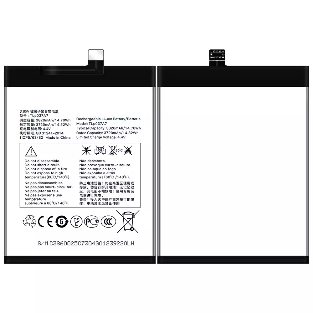 Battery TLP037A7 for Alcatel TCL Plex/T780H