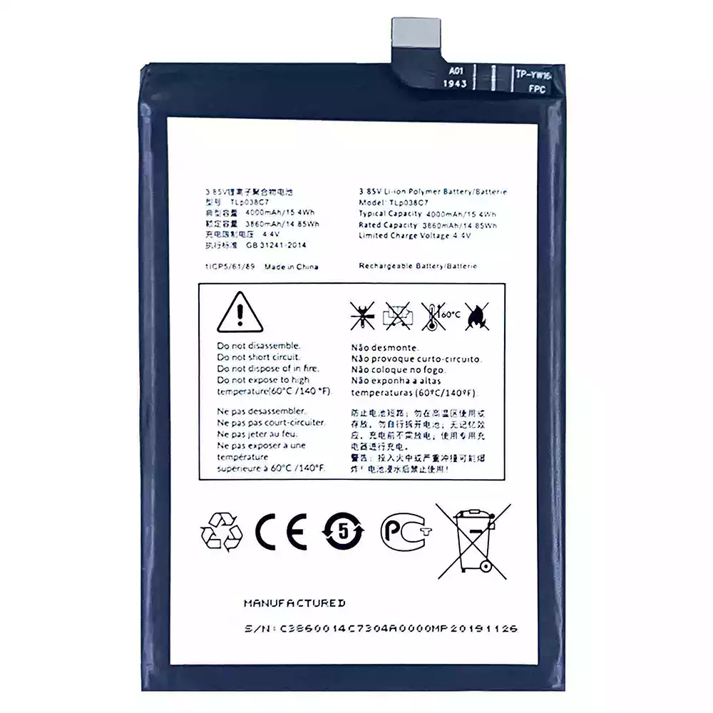 Battery TLP038C7 for Alcatel 3X 2019/5048Y/5048A/5048Y_EEA/5048I/5048U_EEA/5V/5060D/5060A/5060J