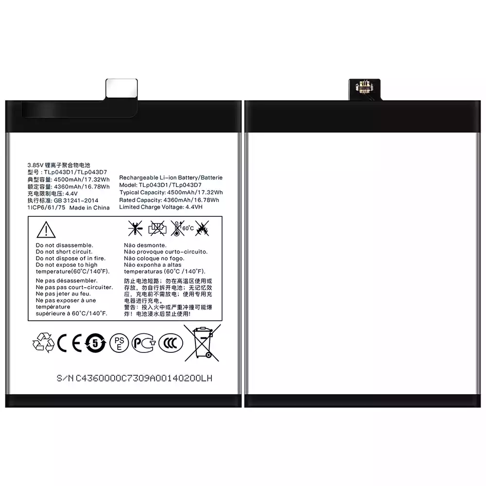 Battery TLP043D1/TLP043D7 for Alcatel TCL 10 Plus/TCL 20 Plus/TCL 10 pro/TCL 20 pro